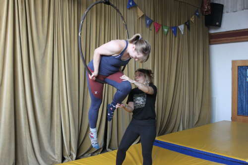Du brauchst keine Erfahrung, Kraft oder Beweglichkeit, um an unserem Aerial-Hoop-Kurs teilzunehmen — das alles bauen wir gemeinsam auf, Schritt für Schritt (oder Drehung für Drehung). Alles was du brauchst, ist Neugier und die Lust, den Boden für eine Weile zu verlassen. Wir erkunden neue Bewegungen, hängen, drehen uns, lachen — und vielleicht überraschst du dich selbst damit, was dein Körper alles kann.