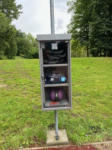 Mit der SPORTBOX kannst Du Dein Training in unserem Campus in Motion Parcours um vielfältige Übungen erweitern. Die SPORTBOX enthält aktuell ein Battlerope und einen Medizinball, darüber hinaus Fitnessbänder, Springseil und weiteres Kleingerät.